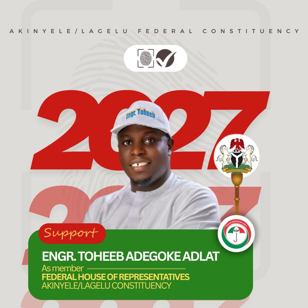 He called for sustained cooperation and unity, stressing that the journey to 2027 has begun in earnest, and with the backing of the people, Engr Toheeb Adegoke ADLAT is well positioned to carry the collective aspiration of Akinyele and Lagelu to Abuja.