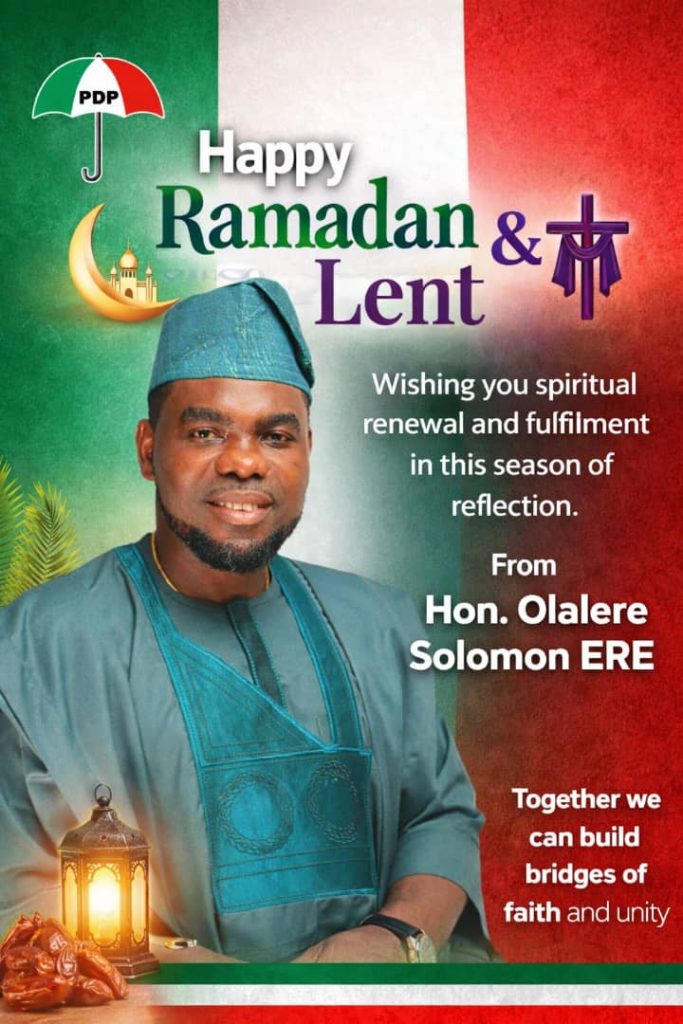 Hon. Olalere Solomon ERE has conveyed heartfelt greetings to the good people of Akinyele Constituency 2 as the month of March commences, encouraging them to remain united, steadfast in love, and unwavering in their shared pursuit of a brighter future.
