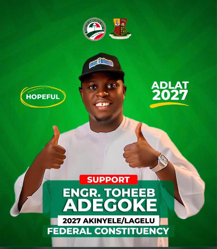 It is with deep humility and unwavering resolve that I, Hon. Engr. Toheeb Adegoke, seek the trust, support, and prayers of our leaders, stakeholders, and members of the PDP as I offer myself as a candidate for the party’s flagbearer for the Akinyele/Lagelu Federal Constituency. I pledge to serve with integrity, transparency, and relentless commitment to the welfare of our people. Every voice will be respected, every community empowered, and every promise pursued with purposeful and accountable action.