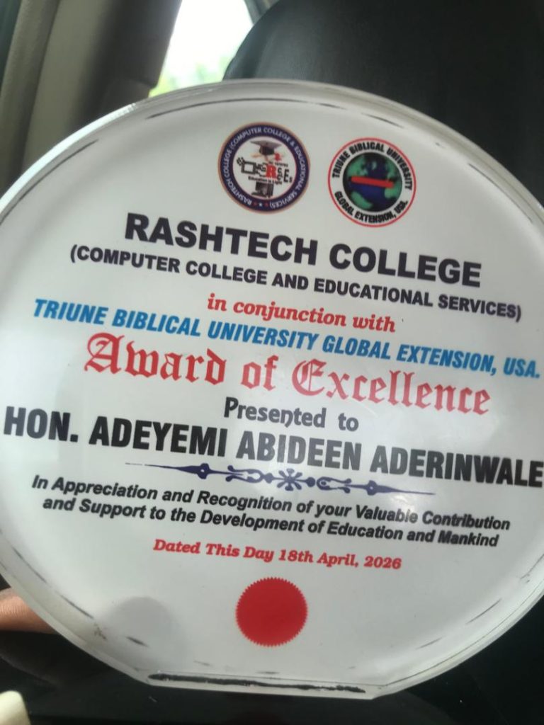 While receiving the award, Hon. Adeyemi expressed heartfelt gratitude to the management of Rashtech College for finding him worthy of such honour. He also used the opportunity to appreciate his principal, the Executive Chairman of Akinyele Local Government, Hon. Akinwole Akinleye, for his exemplary leadership and for providing him with the platform to serve and contribute meaningfully to governance at the grassroots level.