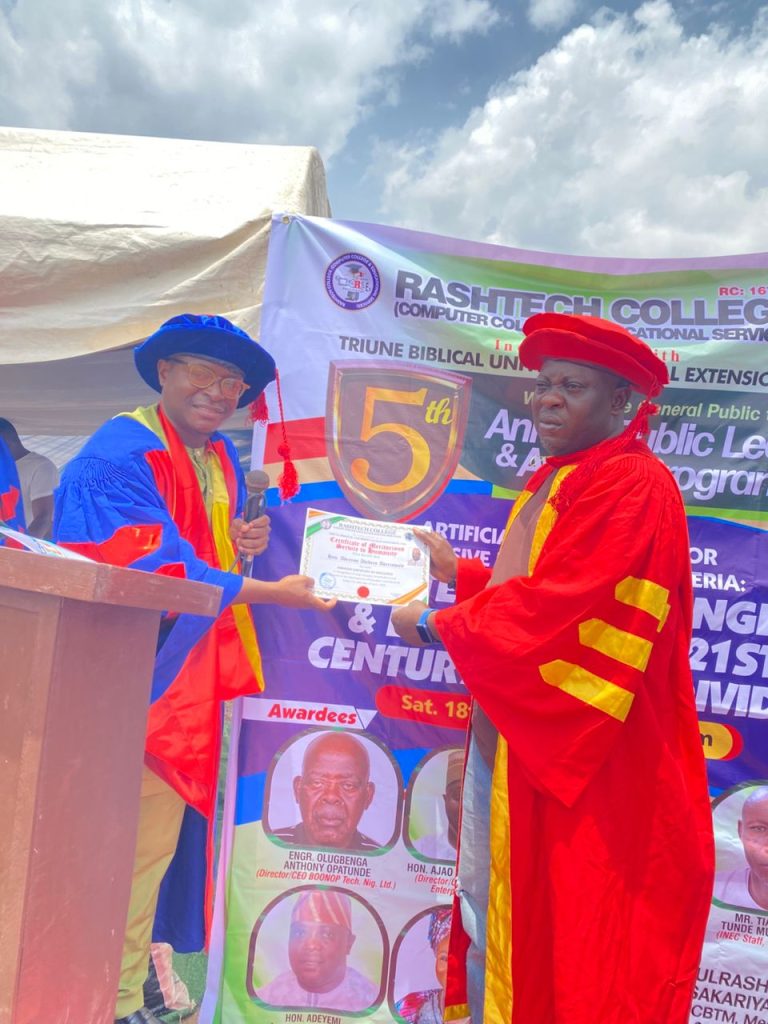 The award presentation took place on Saturday, April 18, 2026, during the annual public lecture and award giving ceremony organized by Rashtech College in conjunction with Triune Biblical University Global Extension, USA. The event brought together dignitaries, education stakeholders, and community leaders, all gathered to celebrate individuals who have made significant impacts in their respective fields.